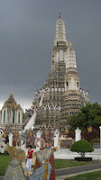 We took a tour on the Chao Phraya River and were able to negotiate down to 400 baht each. We toured around the back canals getting a great view of the housing by the river. With most houses made of wood we saw the simplicity of people's living. Their rooms were generally small with a patio which was used to relax and hang out washing. Many did not escape a satellite dish which looked out of place in the landscape but suggested this luxury was not missed. We saw lizards and fish and all the locals were happy and gave a wave as we passed. We stopped at the Temple of the Dawn, a Buddhist temple sitting on the other side of the river and were met with torrential rain. We were soaked and Celine had her first near experience of loosing her bag. We had our first tuk tuk ride back to Khao San road. Turns out pasty white guys with no hair should wear sunscreen. I was burnt. When will I learn?